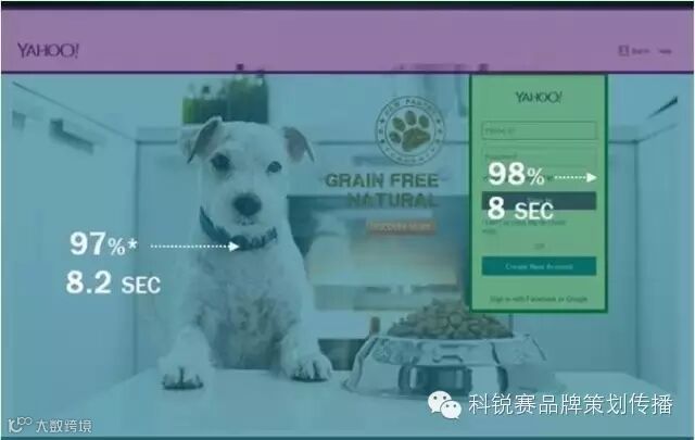 相较于在普通环境的静态广告,平均每一位受测者,多花6倍的时间观看Yahoo登入页的全版广告。设计简洁而单纯的广告(如下图),可以吸引消费者的目光停驻超过8秒,远超过平均的停留时间。