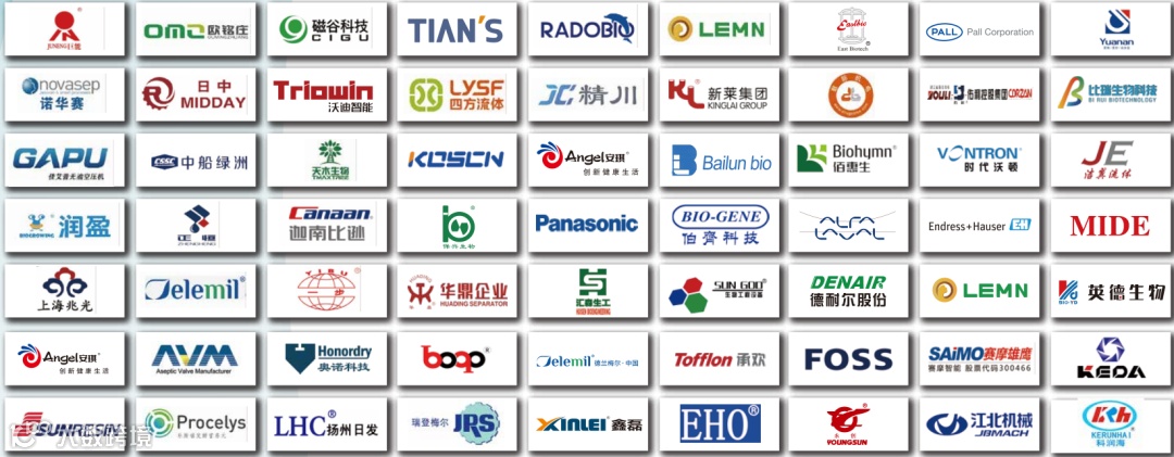 安琪酵母、法国乐斯福、百龙创园、溢多利、梅花集团、阜丰集团、龙力生物、保龄宝、西王集团、上海远安、新莱集团、江苏科海、上海本优、东方生工、上海保兴、保兴生物、巨能机械、汇森生物、威孚热能、金士顿、华东风机、楚天科技、蓝帕控制、南京磁谷、江苏苏青、鑫磊压缩机、东正科技、温州百级、宝帝流体、朝阳大力、中船绿洲、瑞登梅尔、济南上华科技、争光树脂、派莎克流体、青岛精锐、赛摩雄鹰、乐惠国际、科讯工业、鲍斯能源装备、安徽虎渡科达、上海数郜、深圳科姆森、本源环境、美泉环保、广东磁瑞磁悬浮、南口南机、方快锅炉、华青活性炭、长城搅拌、温州金鑫、苏州汉星、海申机电、天香苑、亿昇(天津)科技、天津鼎芯膜、奥米流体、德兰梅尔、三浦工业、苏尔寿、南京汇科、莱克勒、江北机械、一鸣过滤、颇尔公司等;