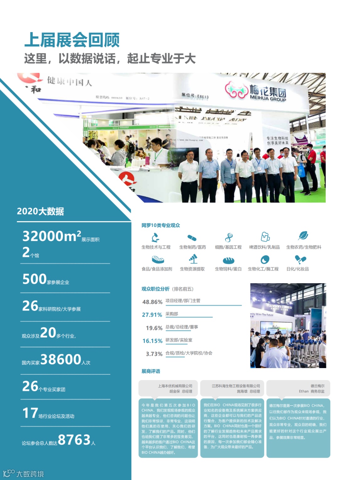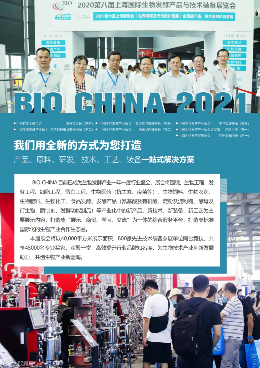 BIO CHINA 是生物产业第一大展,融合发酵工程、生物工程、细胞工程、蛋白质工程、生物制药、生物饲料、生物农药、生物肥料、生物化工、食品发酵工程、生物质能源等行业科研成果及生产应用中的新技术、新工艺、新装备展示,汇集行业拓展人脉、技术交流、贸易合作、科研成果对接、前沿信息洞察、品牌展示等一站式综合服务平台!