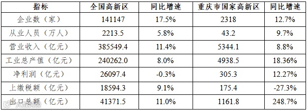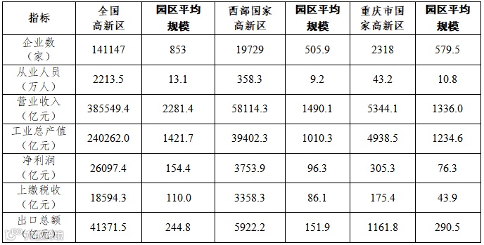 (二)重庆市高新区与全国、西部国家高新区对比分析