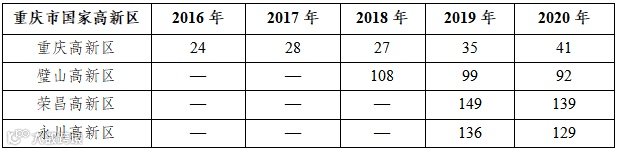 截止目前,重庆共有4家国家高新区,从2021年科技部火炬中心发布的《2020年国家高新区综合发展与数据分析报告》(以下简称《报告》)指出可以分析得到:2020年,早期获批的重庆高新区位列全国第41位,较2019年下降6位;近期获批的3家国家高新区表现相对较好,其中璧山高新区位列第92位(较2019年上升7位),永川高新区位列第129位(较2019年上升7位),荣昌高新区位列第139位(较2019年上升10位)。