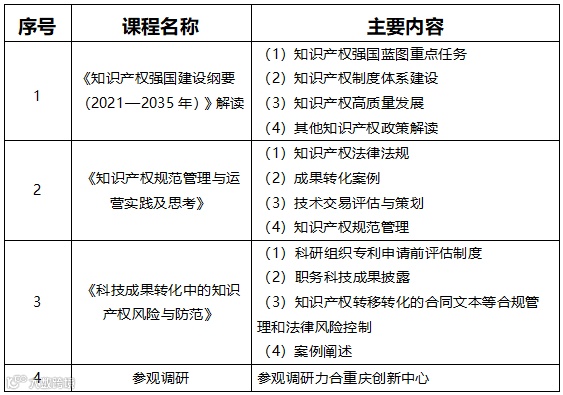 为进一步提升科研组织及科技型企业知识产权管理、运营以及科技成果转移转化能力和创新水平,我院在重庆市知识产权局指导下,决定举办“重庆市科研组织知识产权管理与运用高级研修班暨重庆经开区科技型企业知识产权与科技成果转移转化培训”。现将有关事宜通知如下: