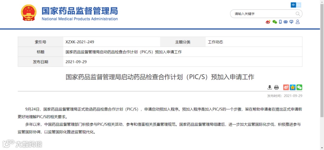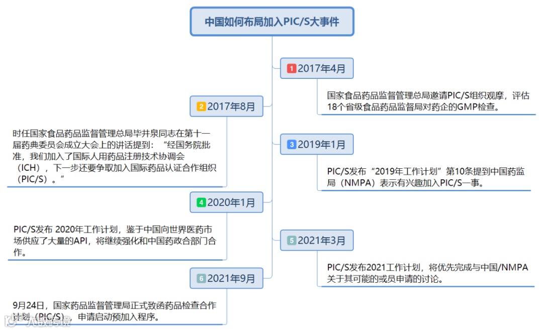 2017年6月19日,中国药监局加入ICH,何时加入PIC/S组织,也被医药行业所关注。PIC/S作为药品领域极其重要的国际组织,它颁布的GMP是迄今全球最严谨的GMP规范,加入PIC/S,可提升我国药品GMP监管水平,有利于我国制药企业尽快与国际接轨,加快药品出口步伐,是中国制药走向国际市场的根本保障。多年以来,中国药品监督管理部门积极参与PIC/S相关活动,参考和借鉴相关质量管理规范。国家药品监督管理局组建后,进一步加大监管国际化步伐,积极推进参与监管国际协调,以监管国际化推进监管现代化,相关大事件梳理如下:
