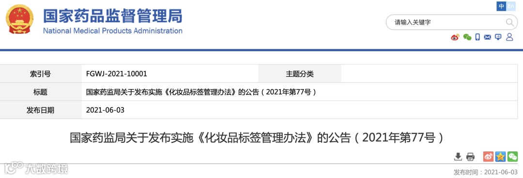 为加强化妆品标签监督管理,规范化妆品标签使用,保障消费者合法权益,依据《化妆品监督管理条例》,国家药监局组织起草了《化妆品标签管理办法》(以下简称《办法》),现予公布。现就《办法》实施有关事宜公告如下: