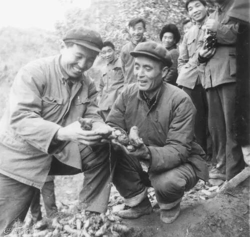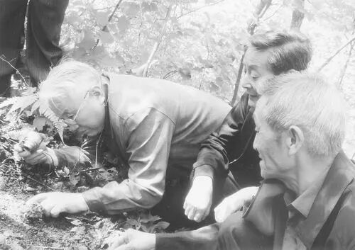 1975年,在陕西宁强县东风三队,徐锦堂与张国栋县长采挖天麻。