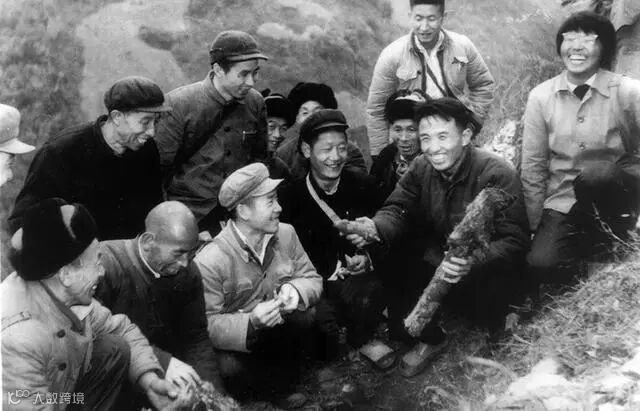 1975年,徐锦堂在陕西宁强县东风三队,向参加天麻生产现场会的农民讲解和示范天麻栽培方法。前排左一为韩省华的父亲韩保文