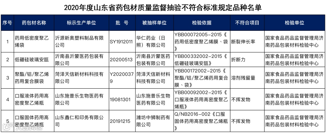 为加强直接接触药品的包装材料和容器(以下简称药包材)质量监督管理,保障公众用药安全,根据2020年山东省药包材质量监督抽检工作计划,省药监局组织各检查分局对全省药包材生产企业、药包材使用单位开展了监督抽样,由国家食品药品监督管理局济南药品包装材料检验中心实施检验。