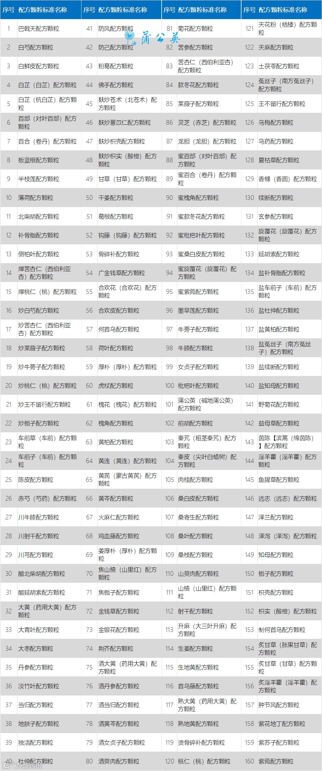 160个中药配方颗粒国家药品标准目录