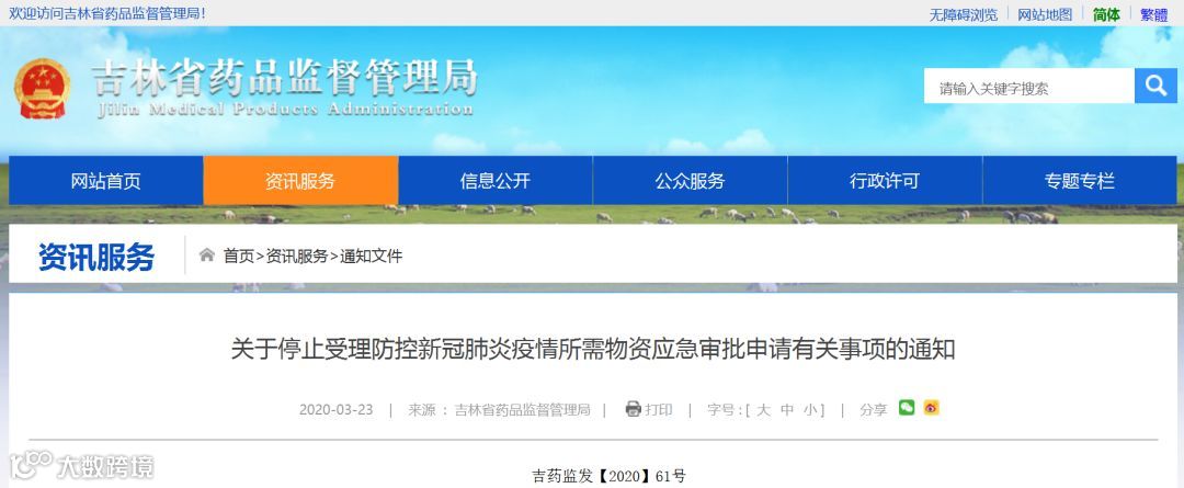 一、自2020年3月24日起,吉林省药监局停止受理医用防护服、医用口罩等医疗器械应急审批申请,转入第二类医疗器械审评审批常规工作程序。