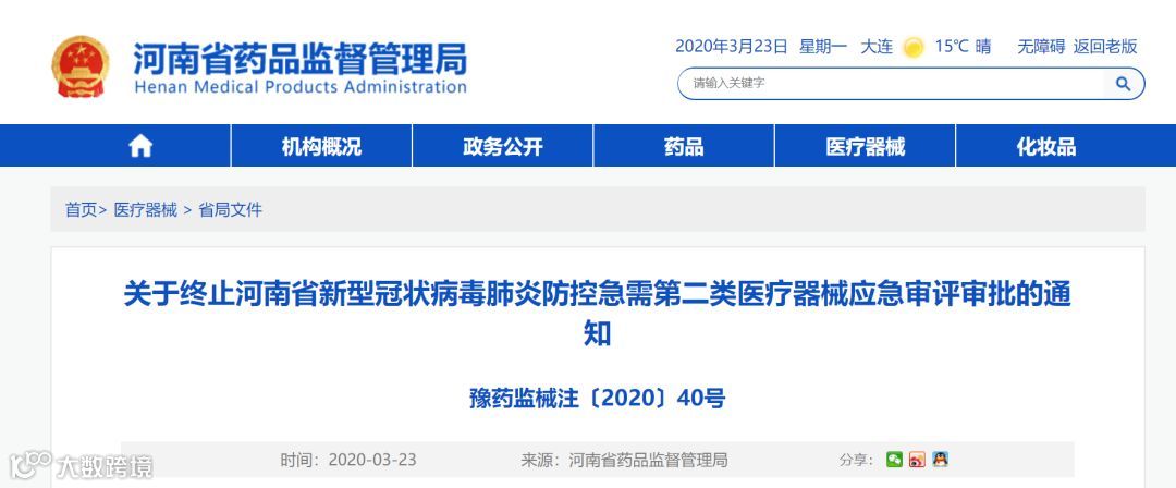 一、自2020年3月23日起,河南省药品监督管理局停止第二类医疗器械应急审评审批受理。医疗器械审批按照相关法规规定的正常程序开展审评审批工作。