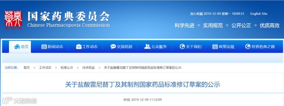 1、《关于盐酸雷尼替丁及其制剂国家药品标准修订草案的公示》