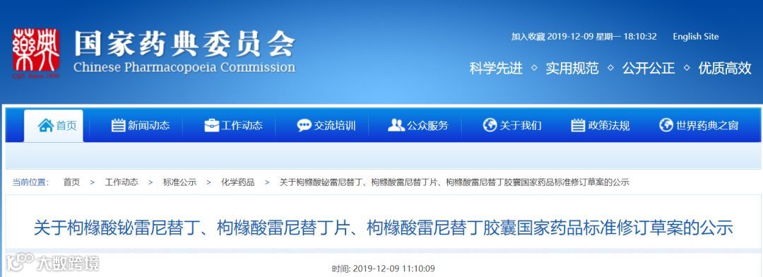 12月9日,药典委发布《关于盐酸雷尼替丁及其制剂国家药品标准修订草案的公示》和《关于枸橼酸铋雷尼替丁、枸橼酸雷尼替丁片、枸橼酸雷尼替丁胶囊国家药品标准修订草案的公示》,对雷尼替丁相关的药品标准进行了修订,向社会征求意见。