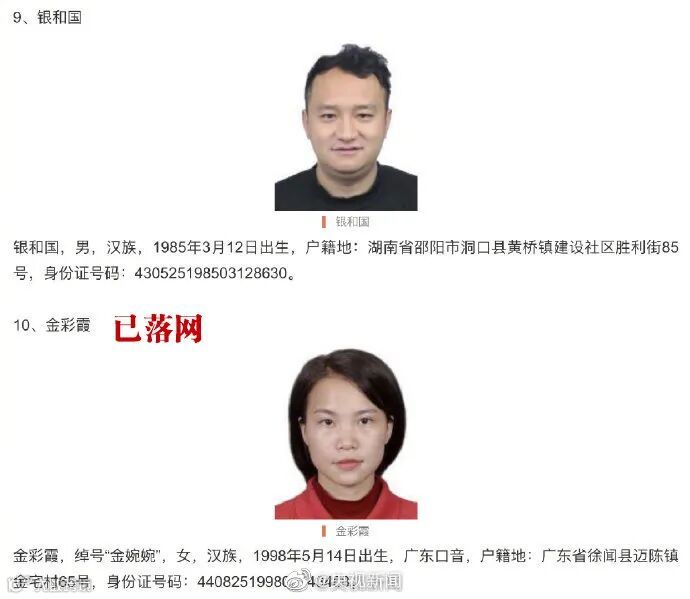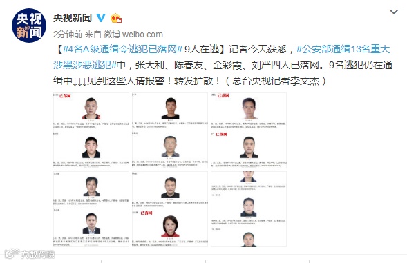 4名公安部A级通缉犯张大利、陈春友、金彩霞、刘严已落网