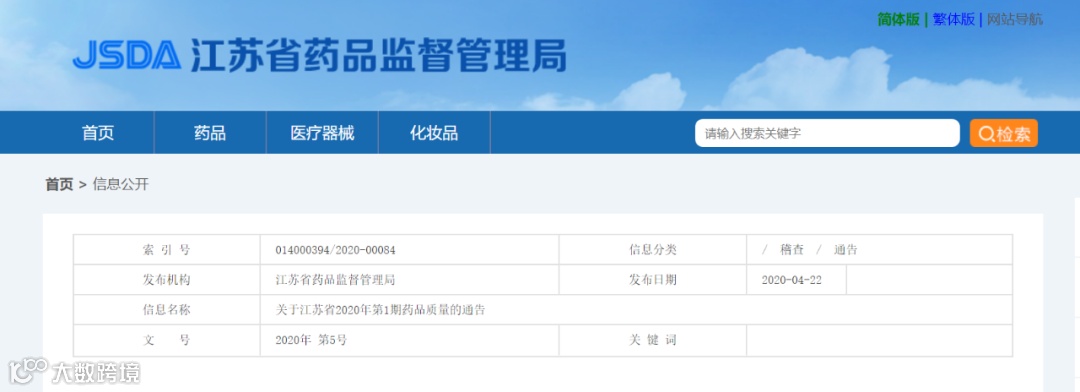4月22日,江苏省药监局发布不合格药品质量公告。抽检不符合标准的产品共14批次。