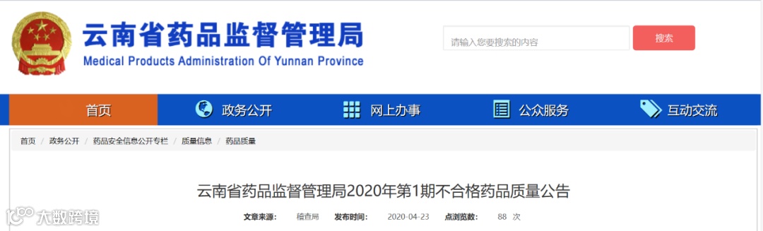 4月23日,云南省药监局发布2020年第1期药品质量公告。抽检不符合标准的产品共12批次。