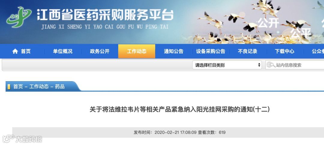 江西也将法匹拉韦等相关产品紧急纳入阳光挂网采购