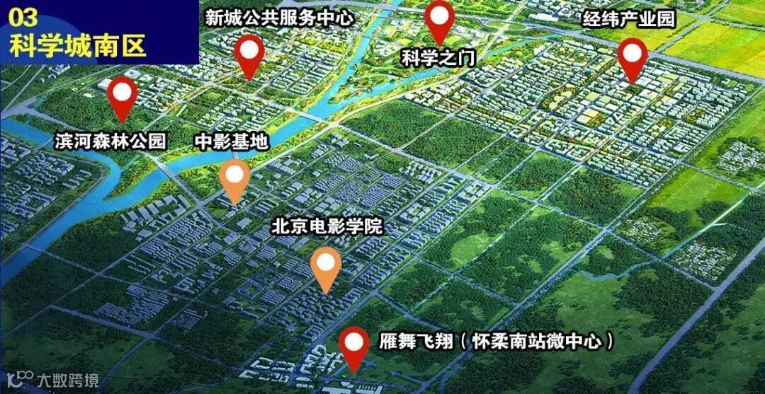 科学城南区面积约21.6平方公里,是与怀柔老城区、中国(怀柔)影视产业示范区融合发展的枢纽区域,是创新型产业示范区、城市综合服务承载区和高品质国际化社区。