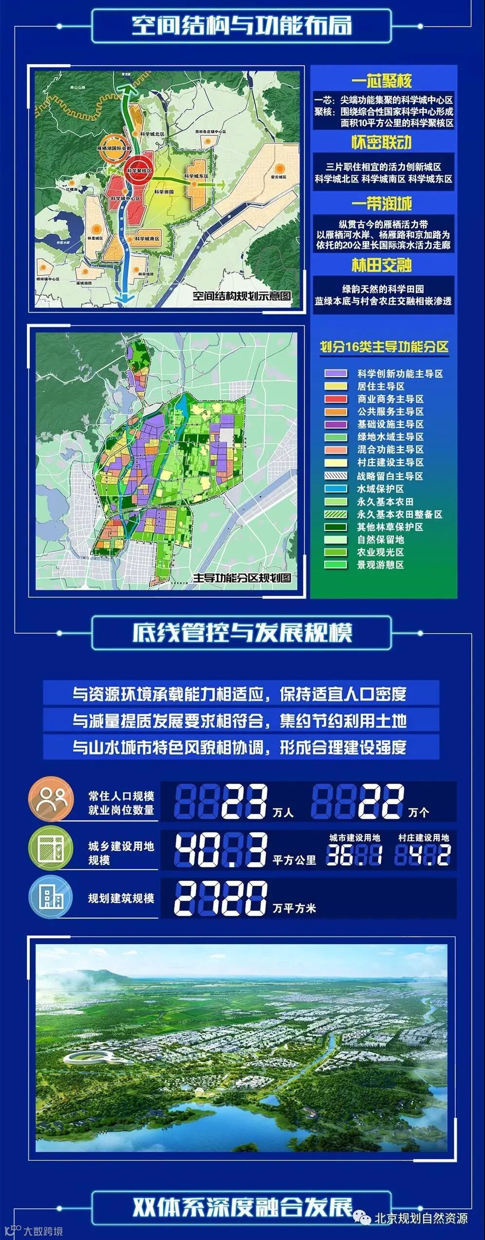 为落实国家创新驱动发展战略要求,深入实施党中央、国务院批复的《北京城市总体规划(2016年—2035年)》,高质量、高起点规划建设怀柔科学城,按照市委、市政府工作部署,市规划自然资源委、怀柔科学城管委会,会同怀柔、密云两区政府,组织编制了《怀柔科学城控制性详细规划(街区层面)(2020年—2035年)》(以下简称“控规”)。目前已形成控规草案,于10月22日起正式启动社会公示。