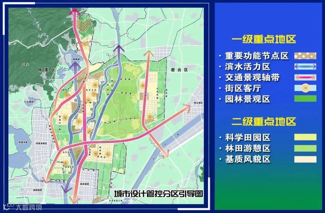 ✔ 在营建“科学城”方面,综合考虑行政边界、功能分区特点及地理标志因素,将怀柔科学城划分为科学城中心区、科学城北区、科学城南区、科学城东区和科学田园5个空间单元,并细分为23个街区,实施分级分类的规划统筹管控。