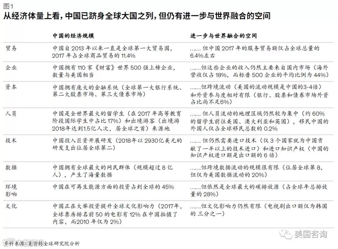 虽然中国作为全球大国,拥有庞大的经济体量,但中国经济尚未全方位实现与世界融合。