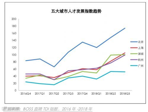 BOSS直聘数据显示,2018年八成人工智能岗位集中在北京、上海、杭州、深圳和广州五大城市。
