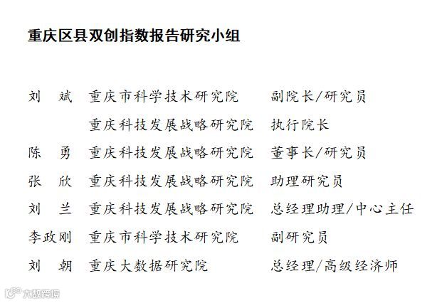 区县双创指数评价结果