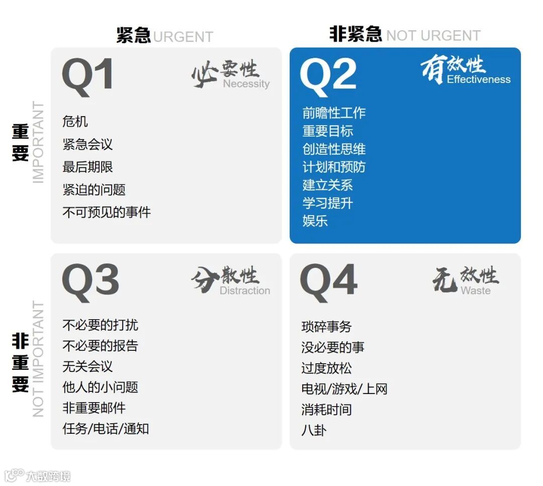 我们在象限2花费的时间越多,我们的效率就越高。我们可以采取以下步骤: