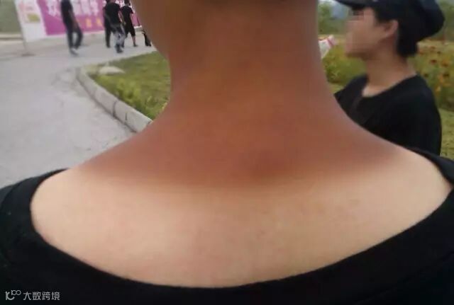 皮肤长时间暴露在室外,吸收大量紫外线,紫外线会激发皮肤基底的黑色素细胞迅速活跃,穿梭在表皮细胞,然后将黑色素蛋白通过细胞代谢层层移动,转移至角质细胞,黑素蛋白转移到角质细胞越多,肤色就越深。经过2-3天的活性和沉淀代谢,皮肤就由白变红,由红变黑。