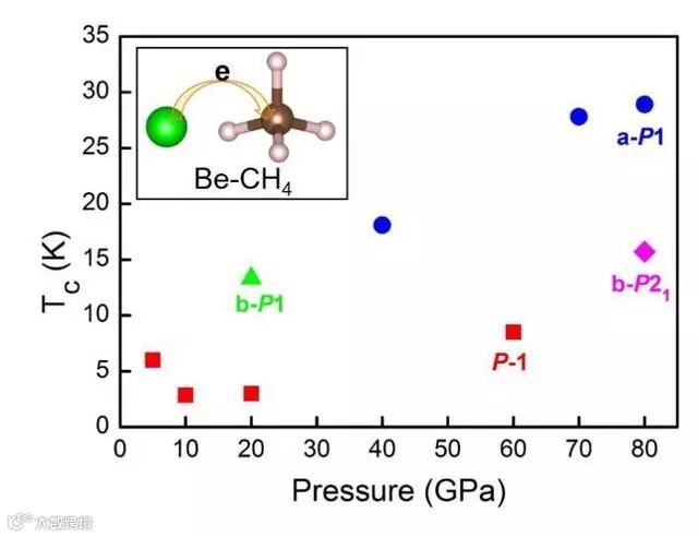 甲烷(CH4)作为最简单的有机材料之一,在超导体的研究中具有巨大的潜力。甲烷是由非常轻的元素组成的,根据BCS理论,如果它能转化成金属,将是一种潜在的高温超导体。然而,纯CH4在常压下是气体,且为宽带隙半导体,即使对其加压到500万个大气压,理论预测其仍不是金属态。这表明通过简单的加压使纯CH4转变为金属面临巨大的挑战。