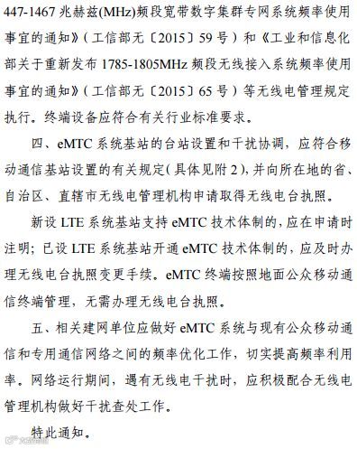 近日,工信部发布《关于增强机器类通信(eMTC)系统频率使用有关事宜的通知(征求意见稿)》。