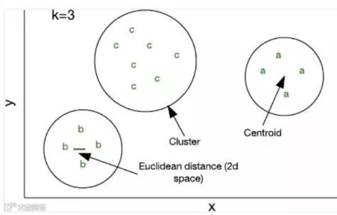 你可以使用少量代码就能实现的最简单的聚类算法是 k-均值(k-means)。其中,k 表示你为样本分配的聚类的数量。你可以使用一个随机特征向量来对一个聚类进行初始化,然后将其它样本添加到其最近邻的聚类(假定每个样本都能表示一个特征向量,并且可以使用 Euclidean distance 来确定「距离」)。随着你往一个聚类添加的样本越来越多,其形心(centroid,即聚类的中心)就会重新计算。然后该算法会重新检查一次样本,以确保它们都在最近邻的聚类中,最后直到没有样本需要改变所属聚类。