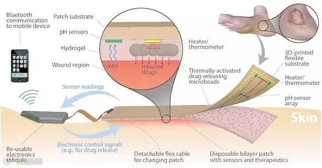 除了美国研制出的Smart Bandage,其他国家地区相关研究者也在拼命研究这玩意儿。