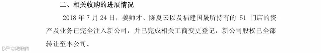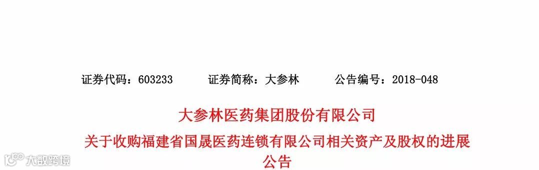 7月27 日(今天),大参林发布公告称,原福建省国晟医药连锁有限公司与股东整合后的新公司旗下51门店,全部资产及业务已经转让,股权100%转让大参林。