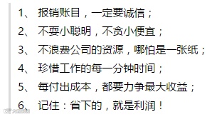 节约,但不可抠门。不要把公司的钱不当钱,公司"锅"里有,员工"碗"里才有;同样,"锅"里多,"碗"里也自然就多。而掌勺的,恰恰就是你自己。