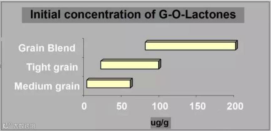 总结几个表可以得出以下结论:纹理越细,芳香物质潜力越高,单宁潜力越低。纹理越粗,芳香物质潜力越低,单宁潜力越高。这也就是陈酿葡萄酒需要多种橡木桶的重要原因之一。
