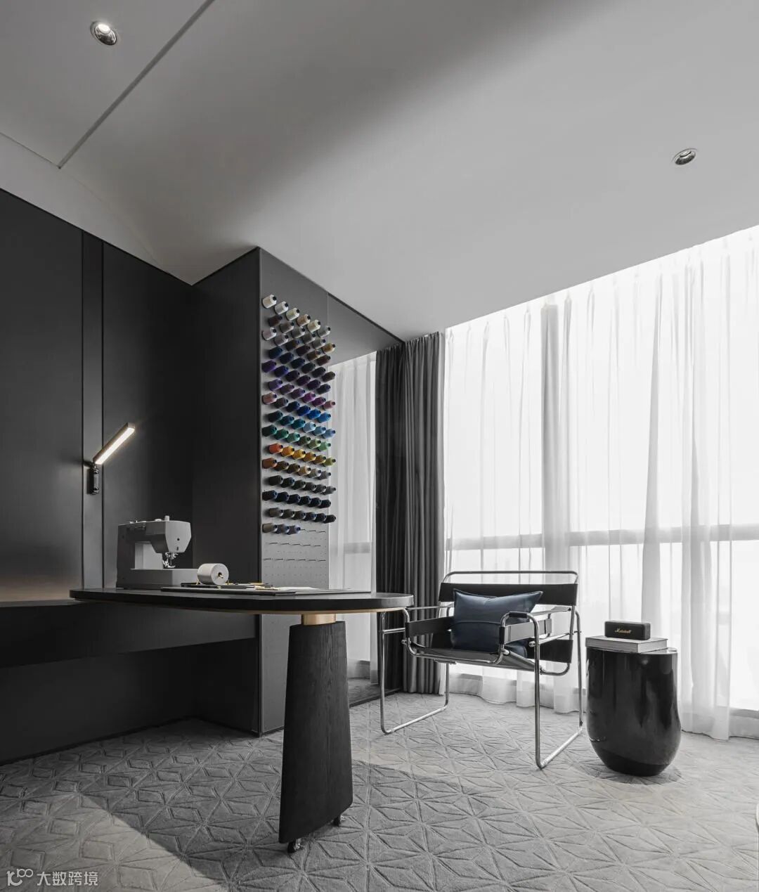 都市压力和生活快节奏被隔之门外,这是专注于自我生活及爱好的场域。设计师从中添加时尚艺术情景,演绎现代都市生活的美学力量。