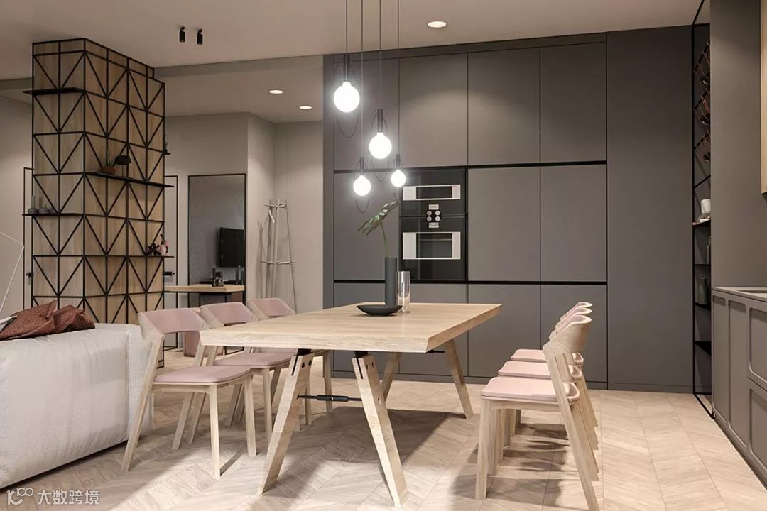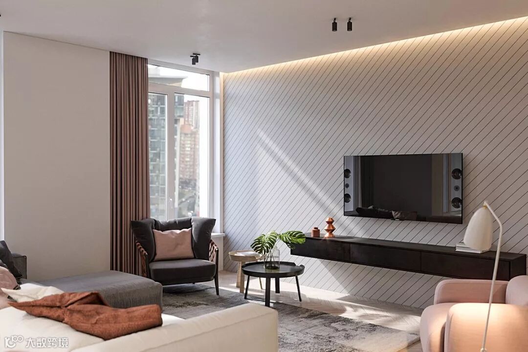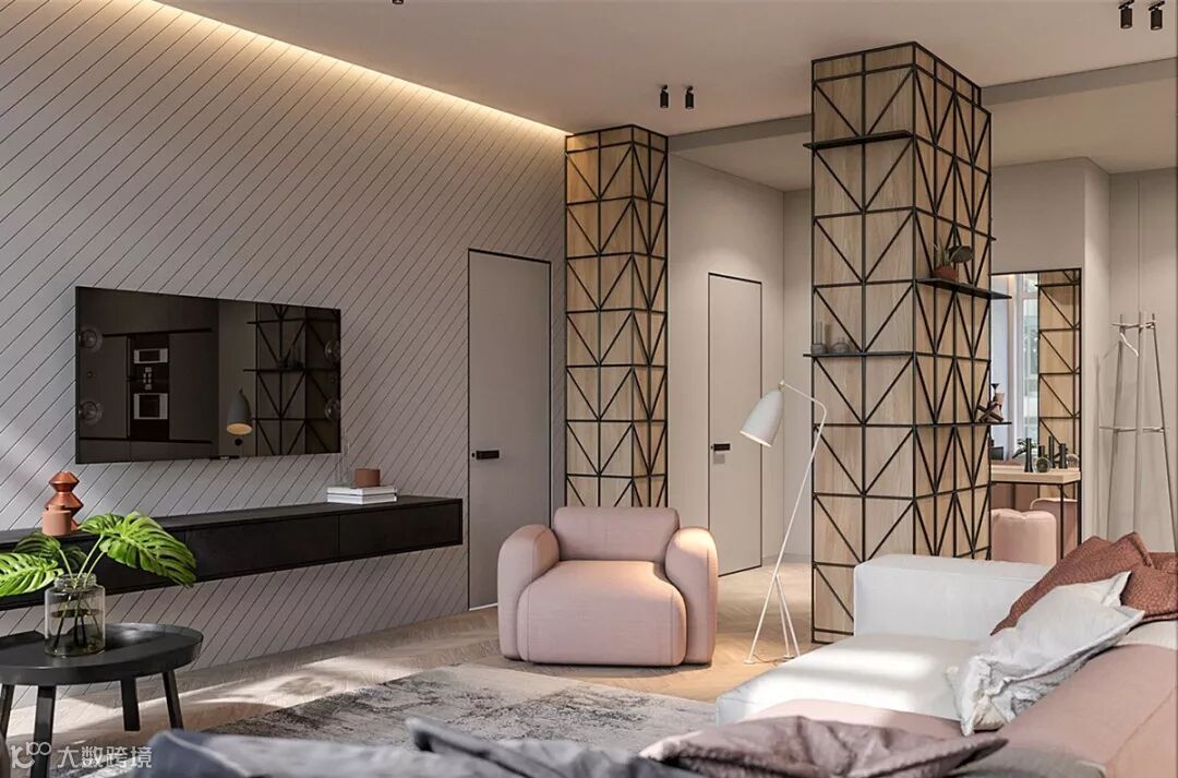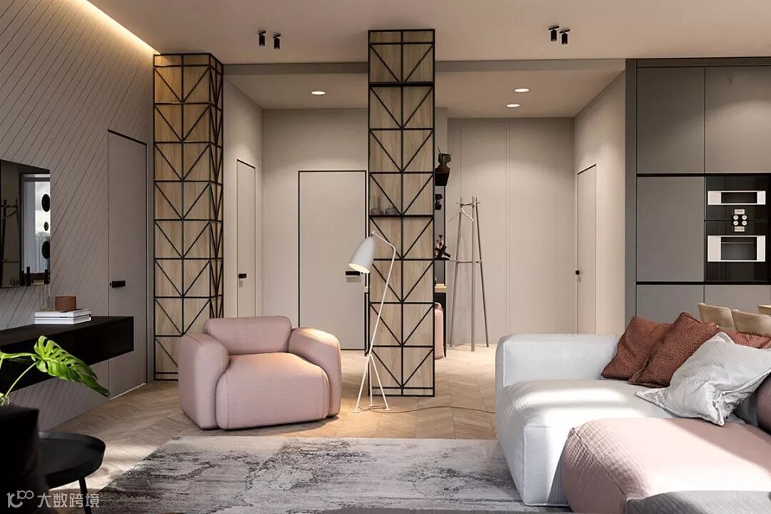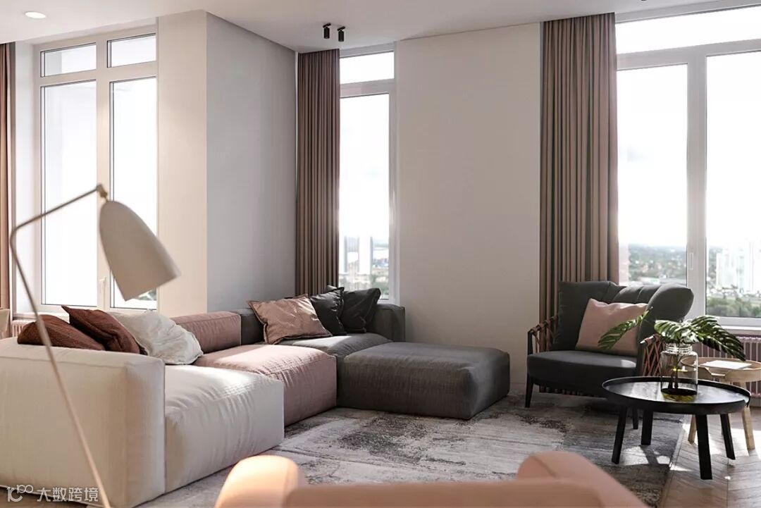客厅处的这三款的多彩现代沙发,每一款都被挑选出了不同的颜色,从白色到腮红,再到灰色。既注意产品的实用功能,又强调设计中的人文因素,避免过于刻板和严酷的几何形式,给人以温柔治愈的视觉感受和舒适的体验感受。