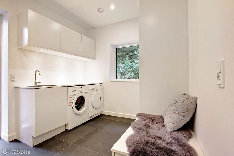 比如家里有独立的小型衣帽间等,里面嵌入洗衣机,熨烫、洗衣、换衣等活动都可在里面进行。