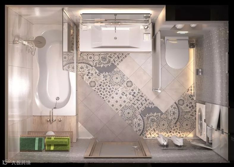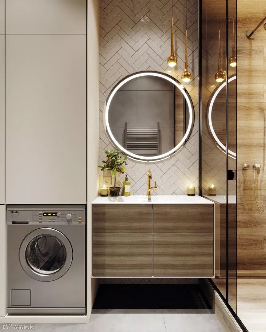②在日本,很多人恨不得将卫生间大卸八块,其实主要目的就是将卫浴空间利用最大化,而我们也可以将洗衣机外移至干区,这样不仅能延长它的使用寿命,还能分区。