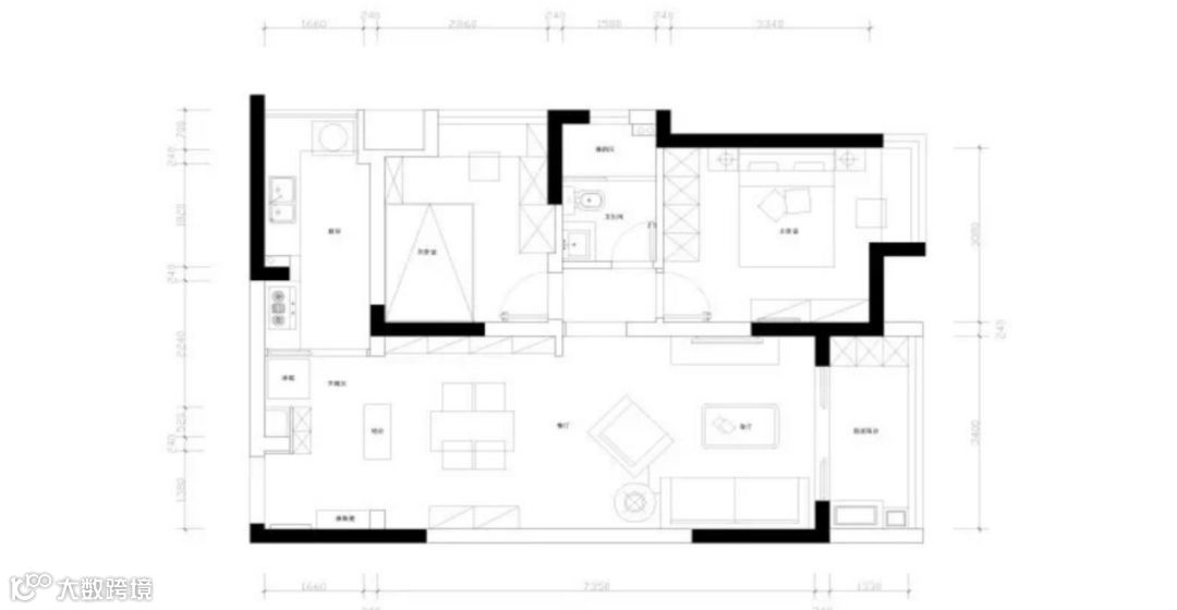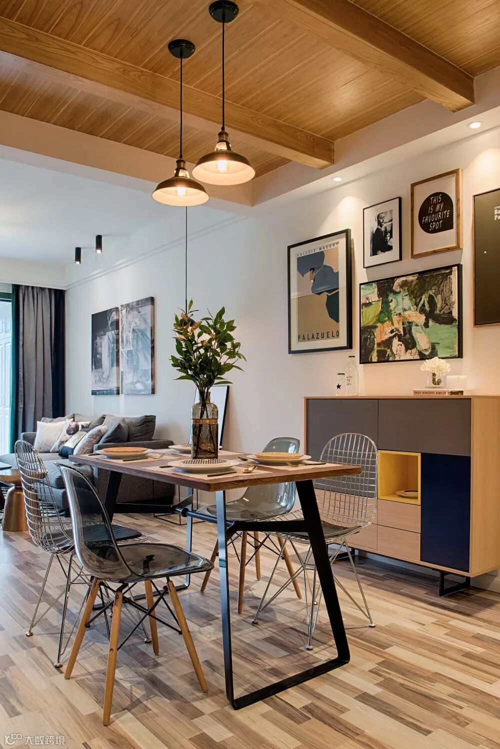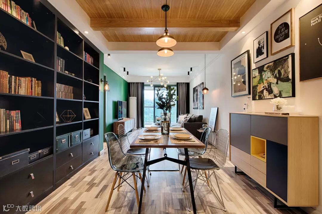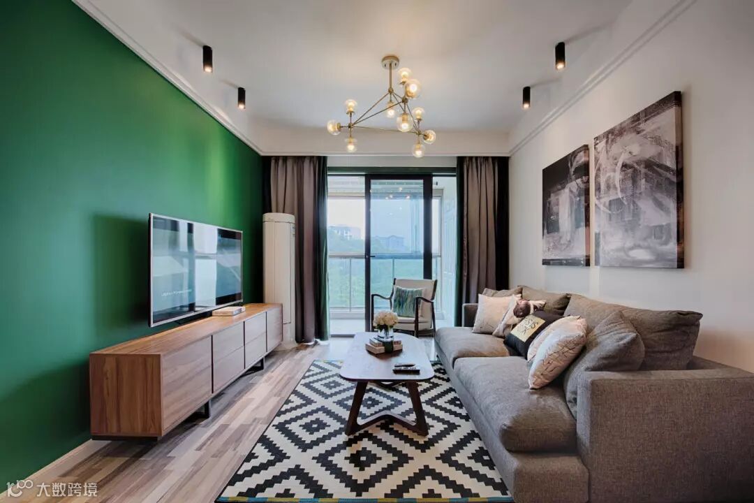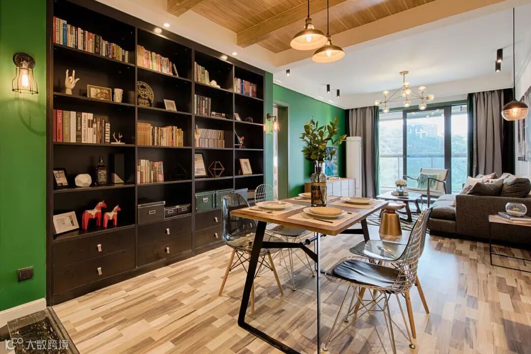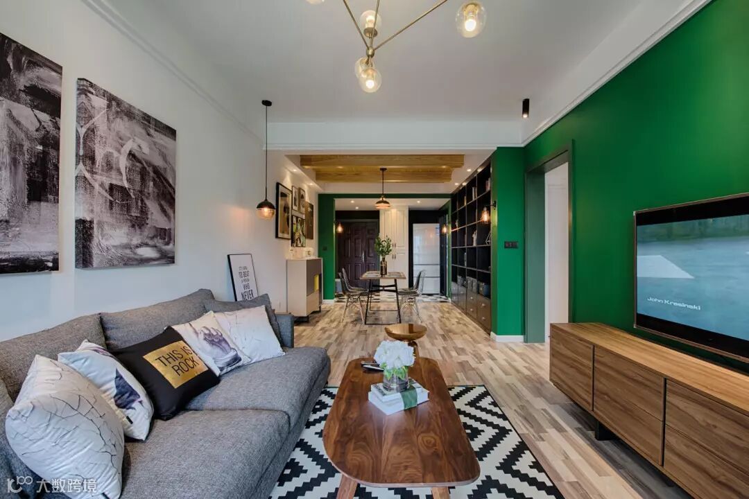 本案为混搭风,以黑色灰色为主色调,穿插着秋冬流行之森林绿和原木色,让整个空间更为随性自然。