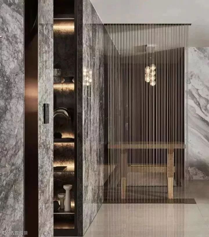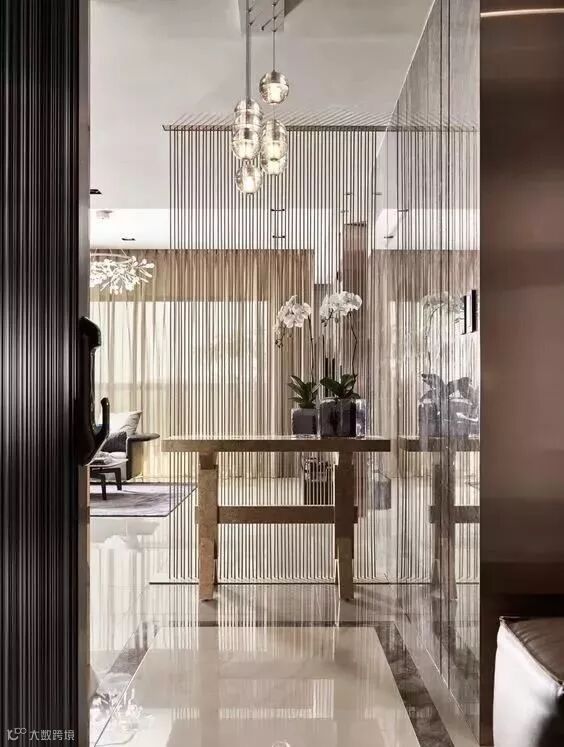 线艺隔断是采用线条的延展性,既分割空间,又不将空间完全隔开,隔中有连接,断中有连续,虚实结合。线艺隔断可以采用不同的材质,如金属、绳子等,将若隐若现的朦胧美含蓄优雅的呈现!