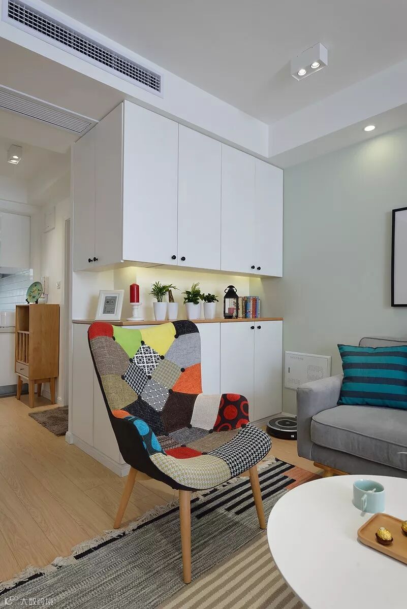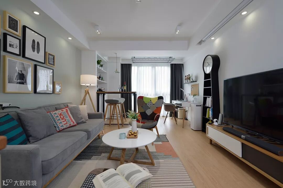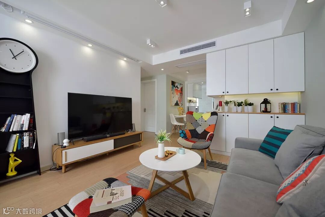 整体是北欧风格的简洁空间,配上舒适鲜艳的软装布置,带来了一个轻松闲适的惬意氛围,充满了清新优雅的气质。