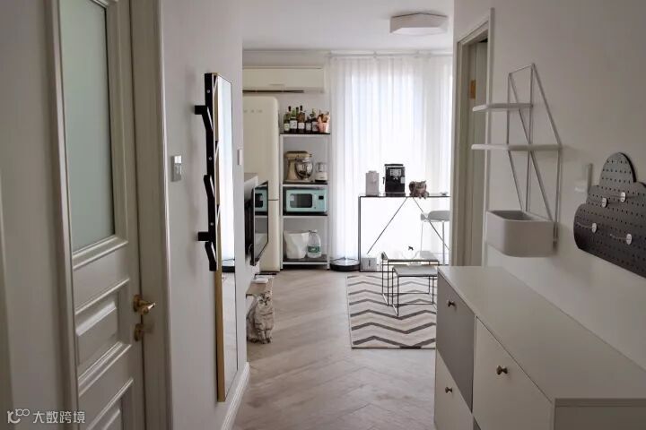 还能拥有衣帽间,在玄关一侧了个小型衣帽间,或者说更应该叫储物间。主要放包和鞋还有箱子什么的,常穿的几件衬衣外套连衣裙挂在挂衣区,更多的衣服还是安置在卧室大衣柜。