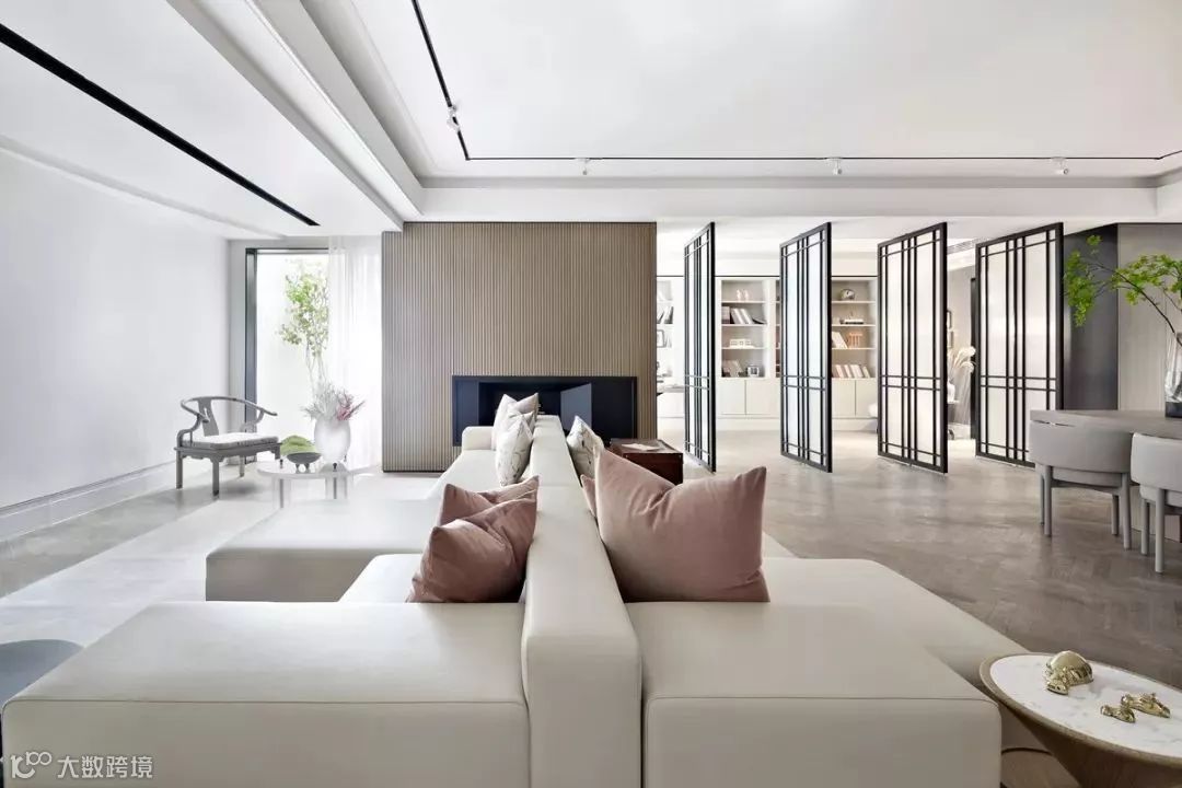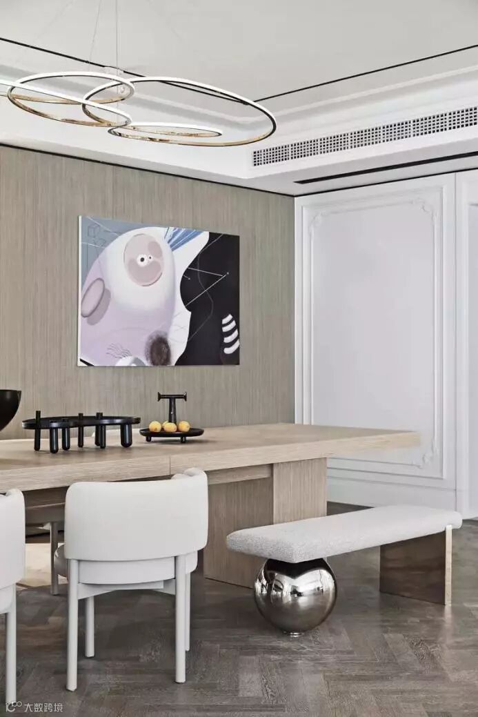 项目分为上下两层,整体空间设计定位为现代法式风格,面对厚重的法式文明,设计师选择以现代的简明线条勾勒,打造非惯性法式居所,让现代法式新生。