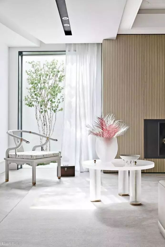 沿楼梯而下,是采光极好的负一层。极简的木色线条勾勒出空间气质,玻璃的通透感引景入室,小庭院的树木近在眼前,阳光透过玻璃照进空间,身心愉悦的感受犹如身处自然,满足需求的大投影仪,足不出户享受影院的氛围。独特的起居室设计,以冲淡的精致叠加深厚的底蕴,在多与少,深与浅,古典和创新之间,轻柔踱步。