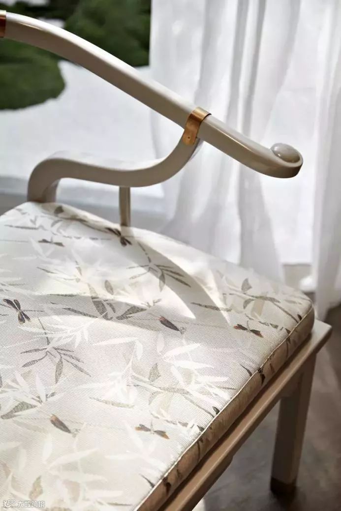 随性的吊顶花环犹如丛林中自然生长的植被,美感敏锐的设计师总能用不经意的小细节触动我们心灵深处。简单勾勒的壁画充满着温馨,诉说着延续的空间故事。靠背图案也与之呼应着,时尚简洁而不简单的法式优雅的气息弥漫。