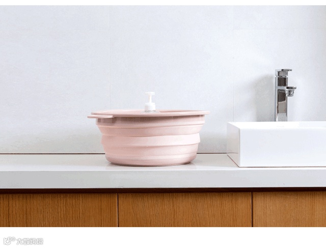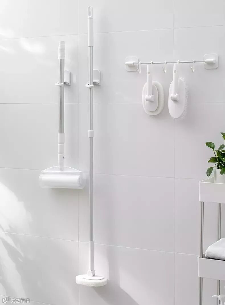 还有一些洗脸盆、拖把,最简单的收纳方式就是放入隐蔽之处,比如挂在墙角或收纳在台盆下方,既能通风防潮,也更美观。还可以在某宝上买专门的折叠脸盆,折叠后超小的体积,放哪都不碍事。