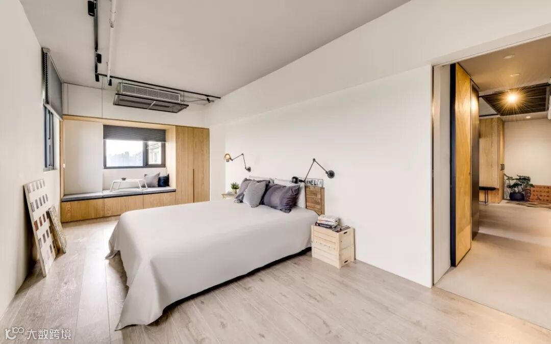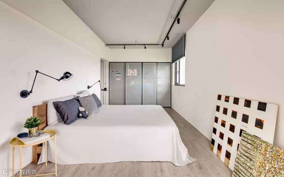 卧室白色+木色搭配,简约温馨的感觉,床头有两盏造型俏皮的壁灯,为增加更多的活力感。