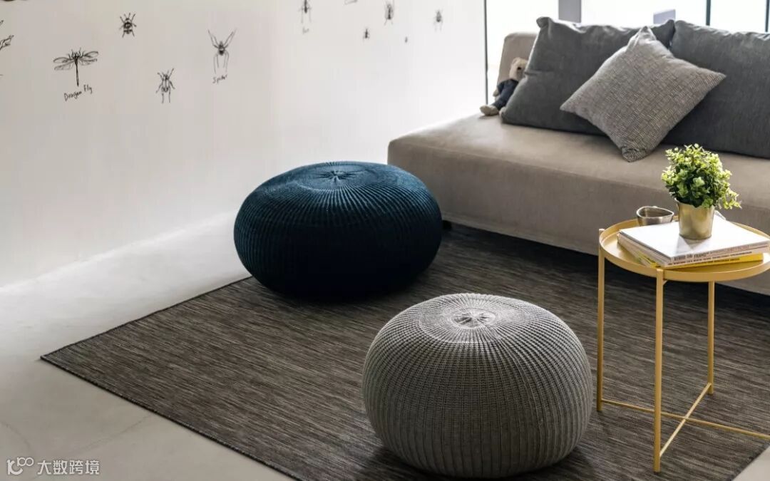 圆形的懒人椅造型没有正边或者反边,就像米暖灰色的沙发一样,两边都可以坐,麻灰色的地毯的质感让人觉得很温暖,尤其是在冬天的时候,这种感觉更明显。