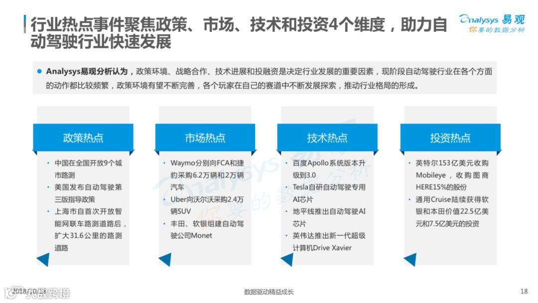 自动驾驶技术是基于多种传感器、人工智能算法以及车辆线控技术,来提升驾驶安全的智能化解决方案,更是汽车行业在未来发展的重要方向之一。自动驾驶的应用前景和商业价值巨大,全球多个国家都在积极的推进自动驾驶行业发展,中国为了在汽车行业实现对欧美日等汽车强国的弯道超车,积极制定相关政策法规,为实现行业快速发展提供良好的环境。自动驾驶行业处于探索期,主机厂、科技企业、创业公司在各自的赛道不断发展创新,推进自动驾驶早日落地。
